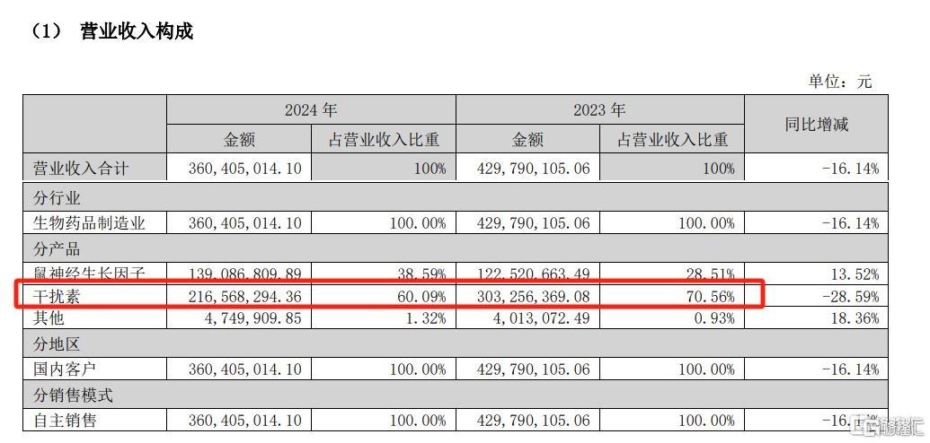 财务数据显示,天津未名2024年实现营收2.17亿元,占上市公司总营收的60.09%。其中干扰素产品近三年贡献率持续超过70%,2024年毛利率更达79.92%。