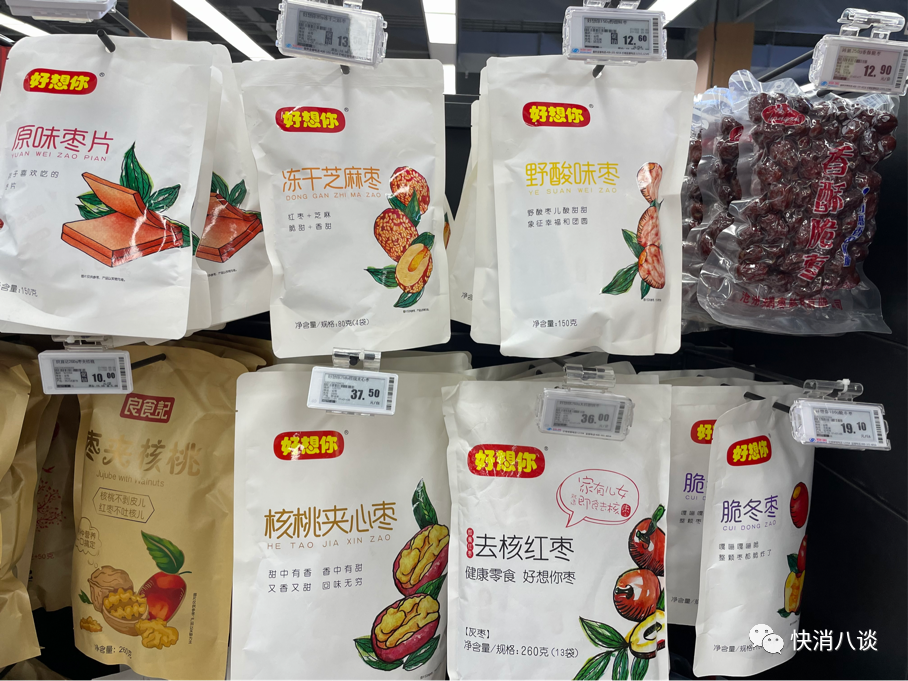 事实上,除了好想你自身盈利能力下降,其主营主打的红枣业务在休闲零食行业中竞争白热化也对其造成一定挤压。目前市场上,三只松鼠、良品铺子、来伊份、百草味等均推出红枣类产品,其中良品铺子还曾打造过现象级网红爆品“奶枣”,并从供应商处单独开设超百万的红枣能量球、脆枣能量球等系列新品生产线。