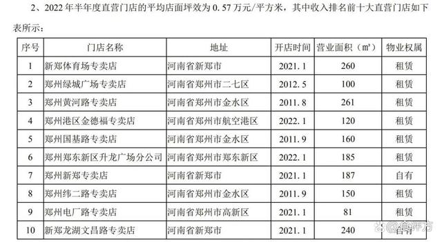 红枣业务面临市场困境,还体现在好想你的门店数量和直营店平均店面“坪效”偏低这一数据上。