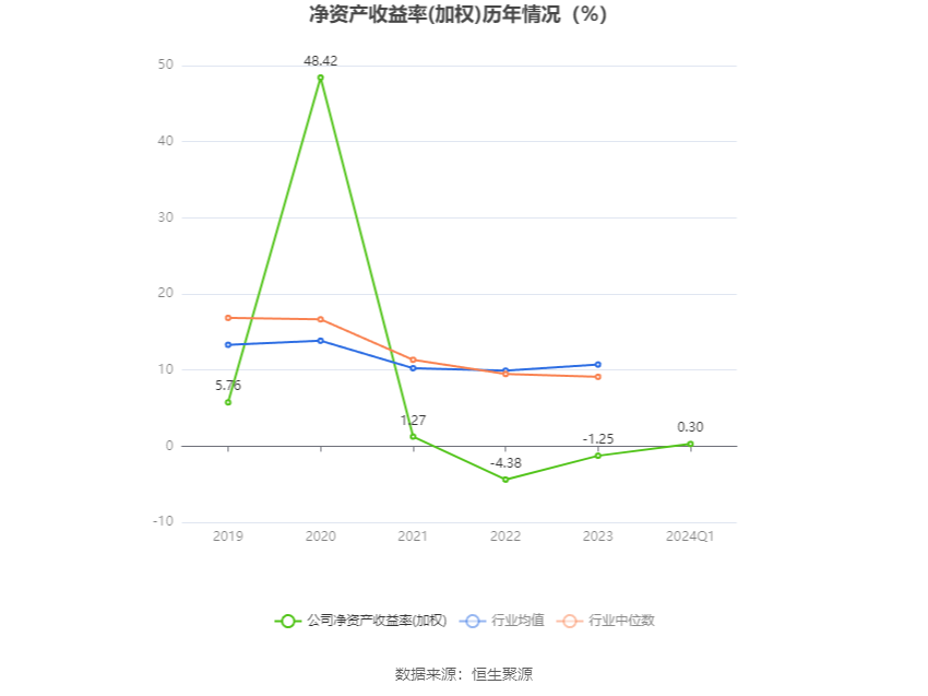 数据显示,2024年第一季度公司加权平均净资产收益率为0.30%,较上年同期增长0.01个百分点;公司2024年第一季度投入资本回报率为0.12%,较上年同期下降0.03个百分点。