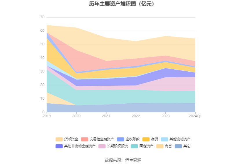 资产重大变化方面,截至2024年一季度末,公司其他非流动金融资产较上年末减少51.56%,占公司总资产比重下降6.00个百分点;货币资金较上年末增加15.25%,占公司总资产比重上升4.90个百分点;存货较上年末减少18.98%,占公司总资产比重下降1.23个百分点;长期股权投资较上年末增加0.96%,占公司总资产比重上升0.78个百分点。