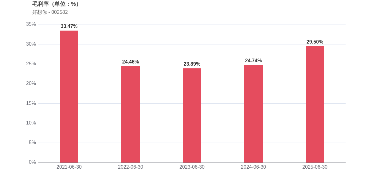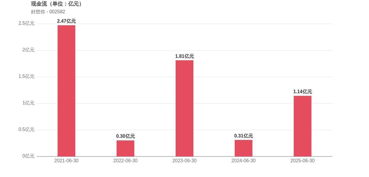 在经营稳健性方面,好想你面临存货周转效率下降的挑战,存货周转天数为121.11天,较上年同期增长8.97%,表明库存管理压力加大。经营活动产生的现金流净额为1.14亿元,同比增长0.83%,现金流状况有所改善。此外,2025年上半年的资产负债率为30.54%,同比增长4.60个百分点,这意味着公司负债水平有所上升。