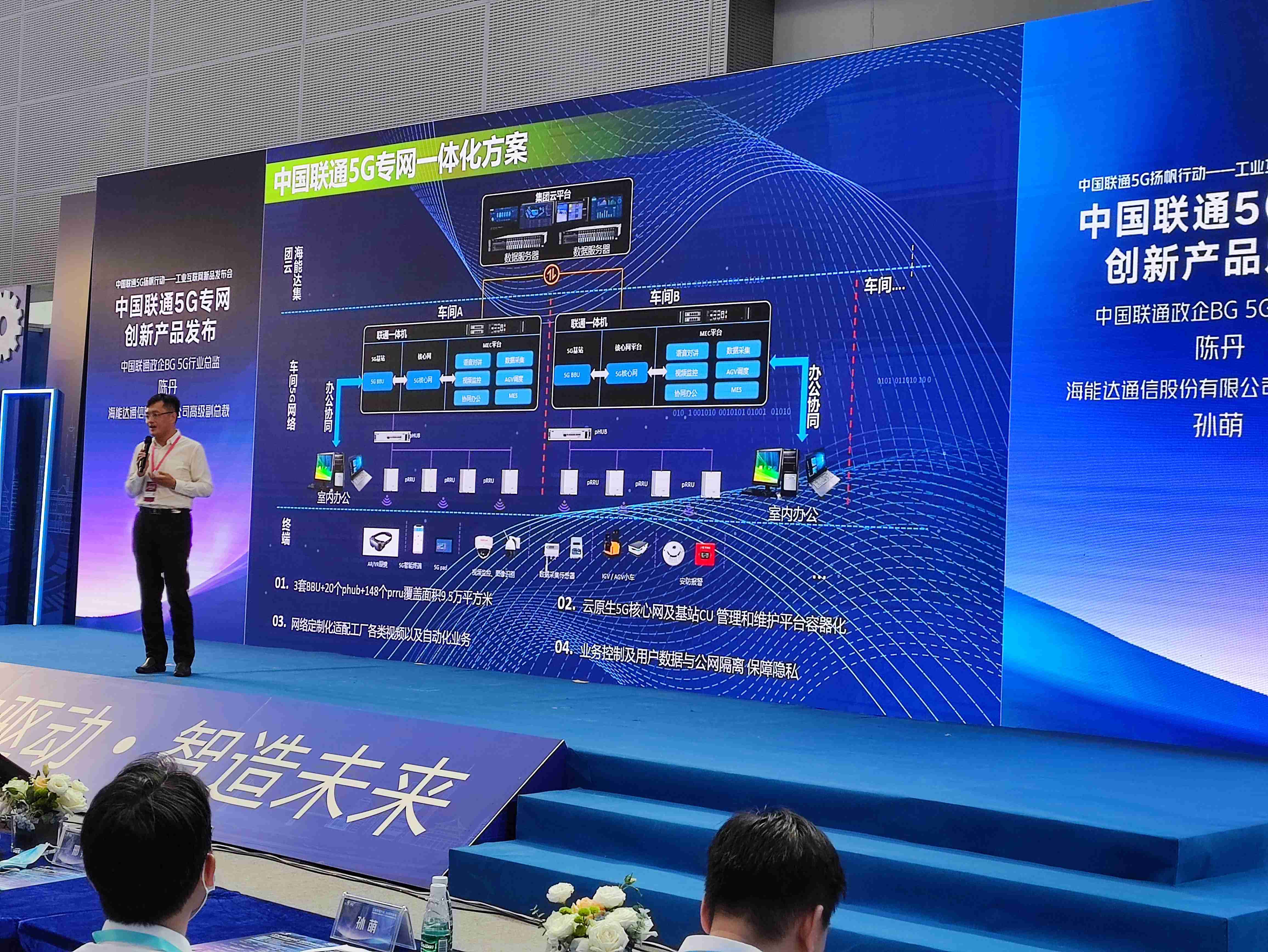 为了探讨数字经济时代制造业数字化转型的机遇,举办方还开辟了6场主题论坛,邀请相关领导、专家及企业负责人针对5G+工业互联网的发展与应用进行了深入交流。其中在“工业转型升级,5G扬帆起航”分论坛上,中国联通发布了全自研5G一体机和5G工业应用平台,海能达作为战略合作伙伴出席了本次新品发布会,海能达高级副总裁孙萌先生就5G一体机落地海能达龙岗园区智慧工厂情况,以及海能达对5G+智慧工厂的建设成绩做了分享。