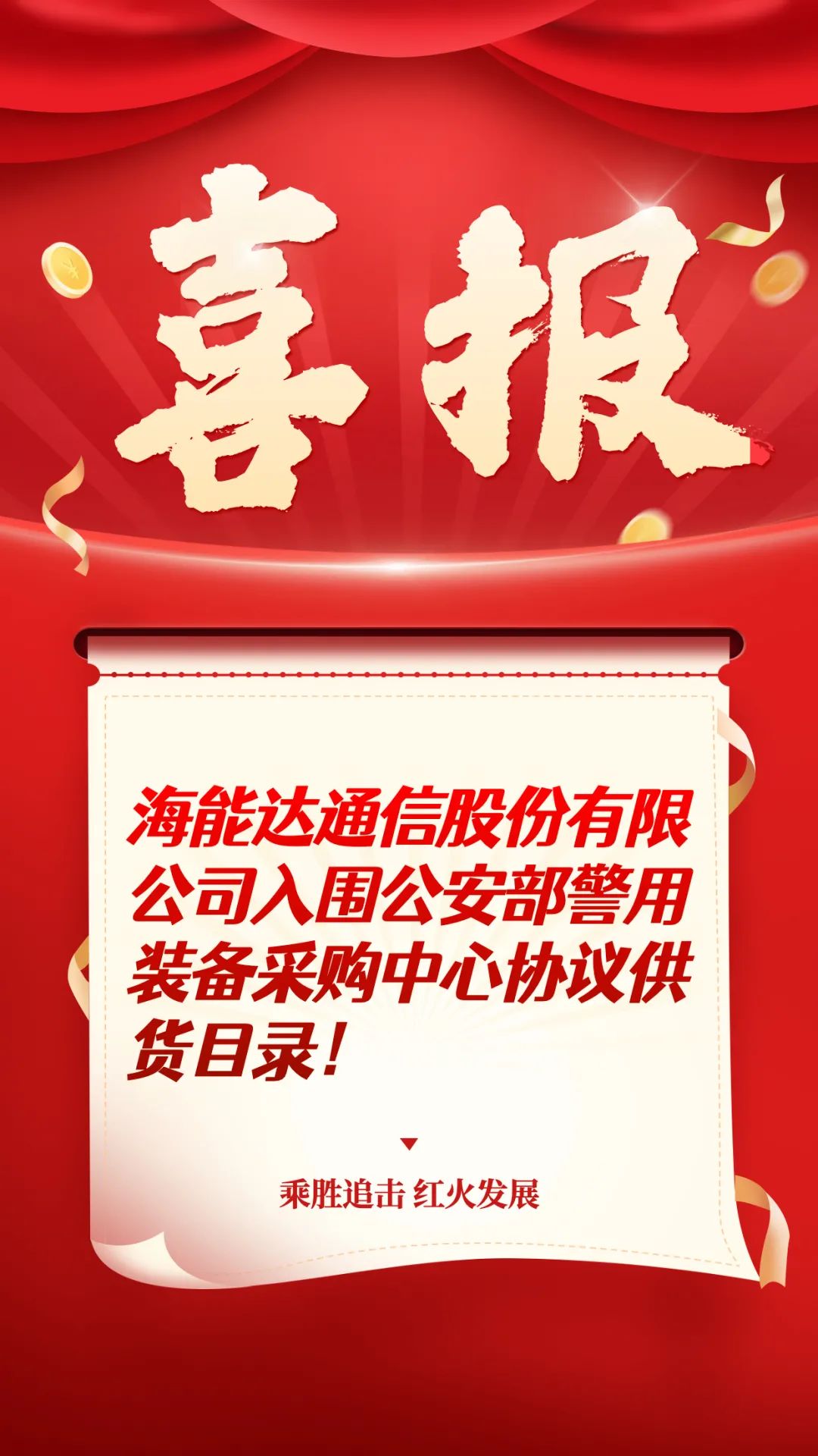 海能达通信股份有限公司入围公安部警用装备采购中心协议供货目录!