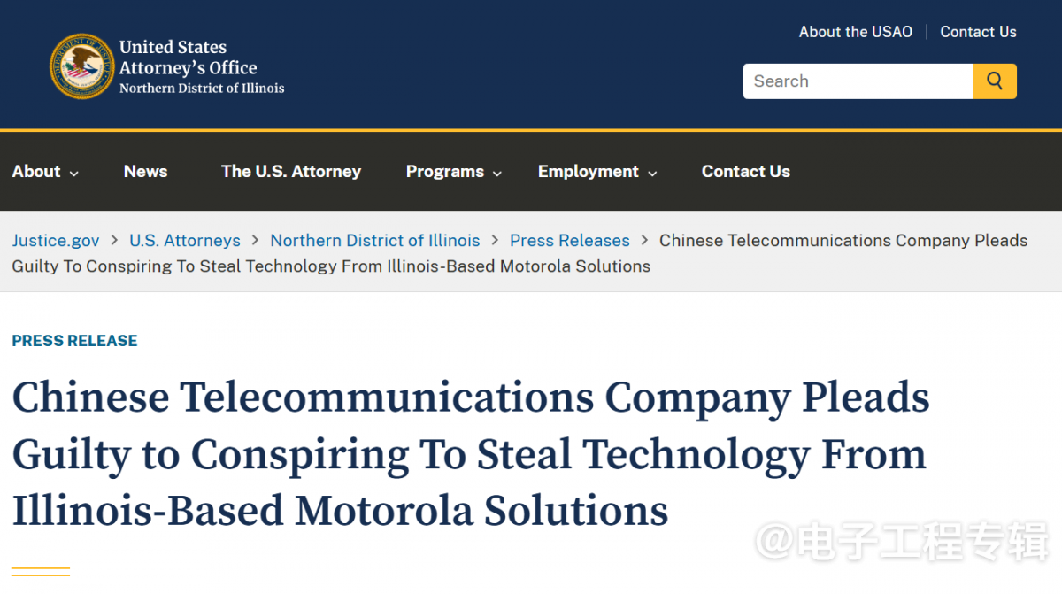 美国司法部表示,根据认罪协议,海能达通过个人为公司谋利的行为,明知故犯地合谋窃取摩托罗拉的至少一项商业机密。认罪协议指出,2008 年,这些人同意窃取与摩托罗拉数字移动无线电技术相关的文件和源代码,然后利用其中一些信息开发海能达产品,其中一些产品后来在伊利诺伊州出售。海能达在认罪协议中表示,这些人知道和/或合理地相信他们同意窃取的部分信息受到摩托罗拉的合理保护和保密,窃取至少一项商业机密可能会损害摩托罗拉。