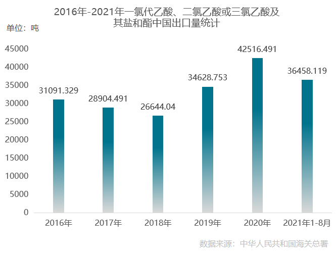据行业人士透露,三氯乙酸需求量较大,除了国内下游石油化工、医药、食品制造、生物技术等领域需求,还有一部分三氯乙酸用于出口国外。