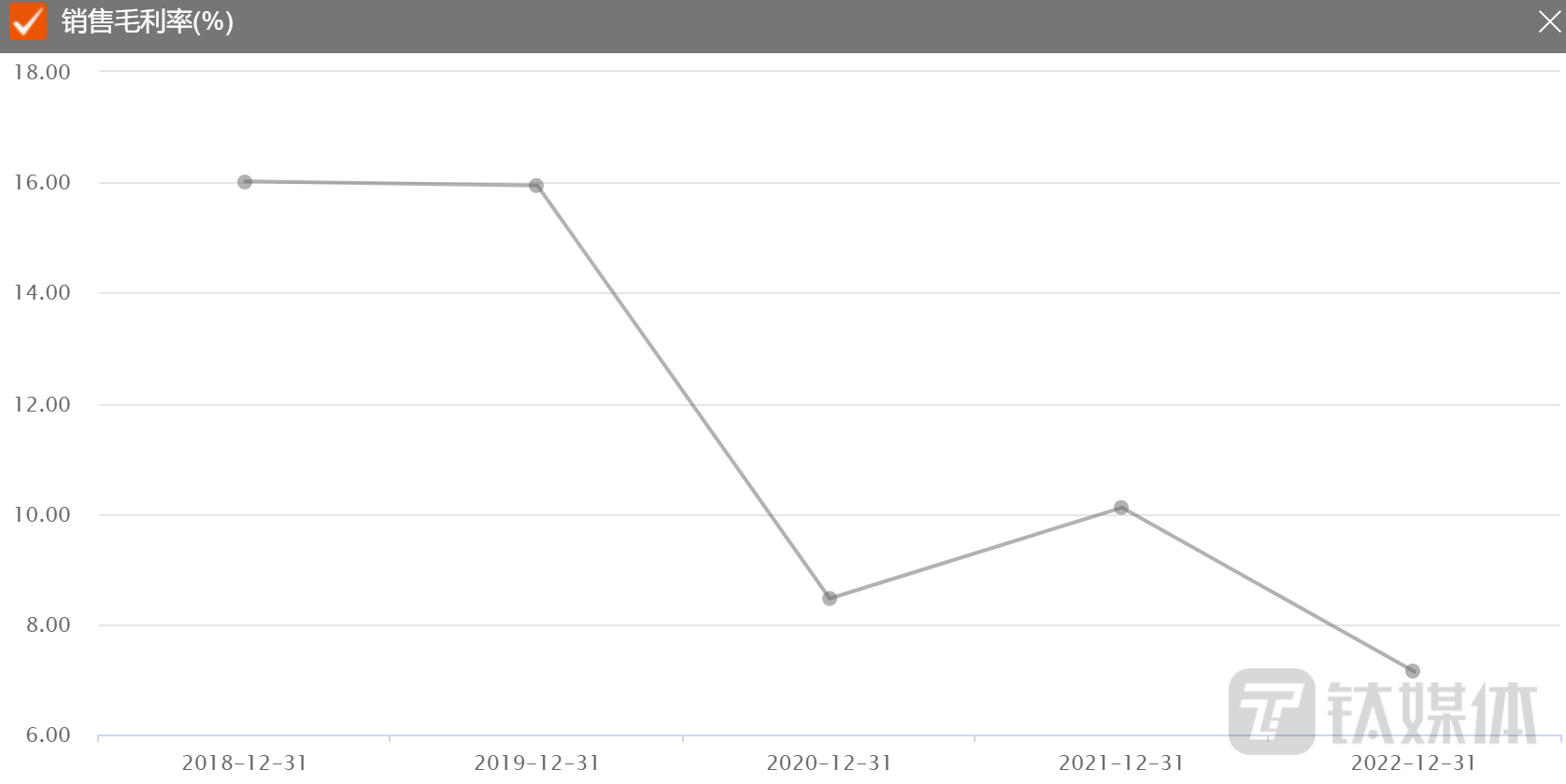 公司盈利能力下滑和近年来毛利率逐年走低分不开。目前销售毛利率为7.14%,销售净利率为1.4%,净利率较低且不能有效的将毛利转化成净利,公司盈利能力难以提升。