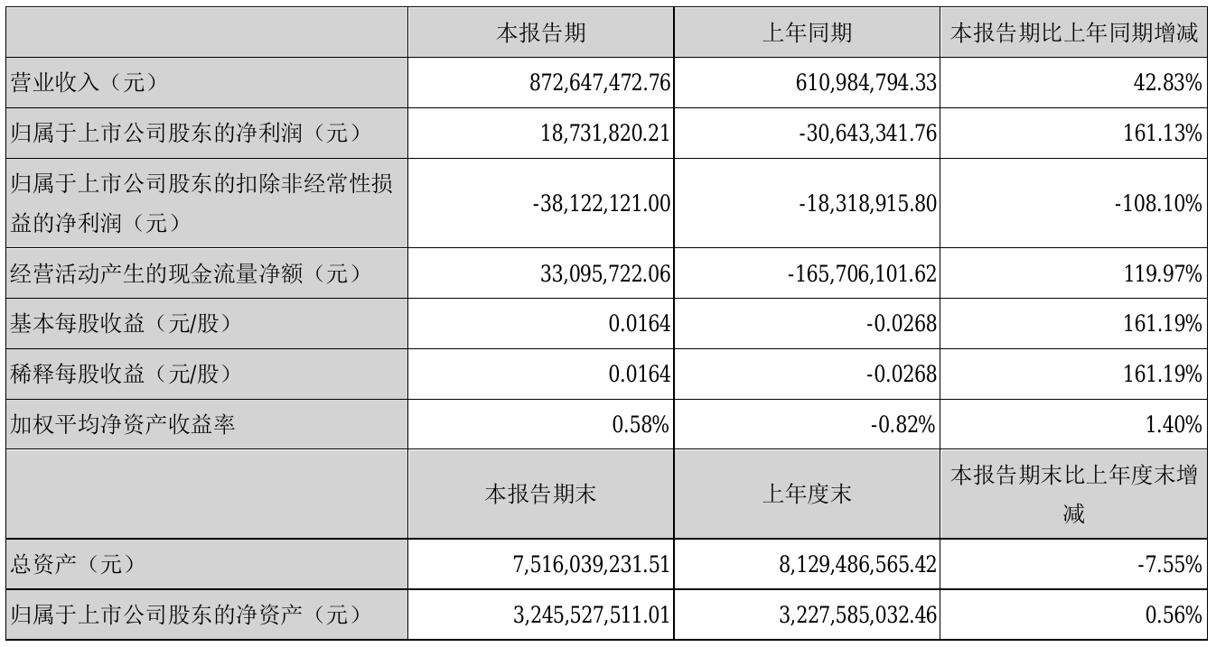 8月25日,*ST围海(002586)近日发布2021年半年度报告,报告期内营业收入872,647,472.76元,同比增加42.83%;净利18,731,820.21元,同比扭亏为盈。