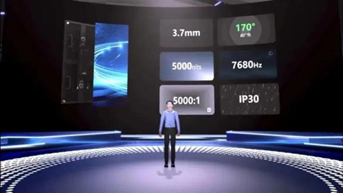 在显示性能方面,M3.7H点间距为3.7mm,最高亮度达5000nit,刷新率高达7680Hz,对比度可达5000:1。
