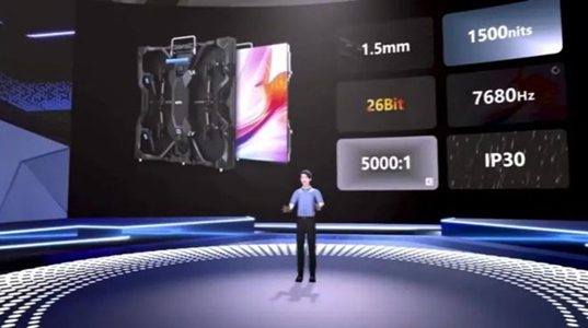 RM1.5显示屏的点间距为1.5mm,像素点为400k/平方米,显示屏反射率在5%以内,拍摄角度可达170°。同时在显示性能方面,RM1.5采用共阴设计,RGB全倒装芯片,亮度可达1500nits,刷新率高达7680Hz,具有26Bit色深,5000:1的高对比度。