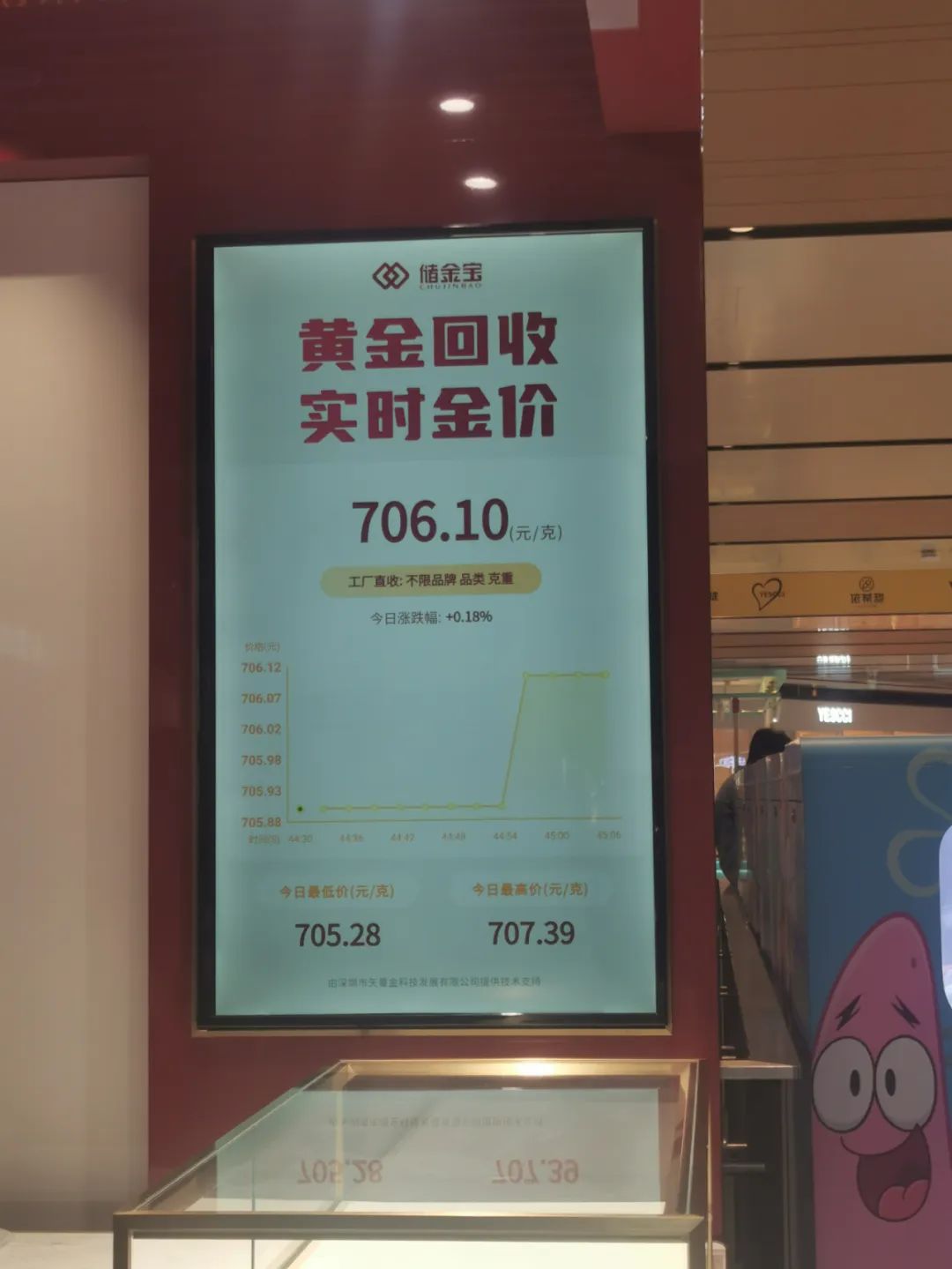 此次合作的核心亮点,是奥拓电子量身定制的55寸高清电子显示屏。其凭借大尺寸、高清晰度与卓越稳定性,成为门店最醒目的“金价信息中枢”: