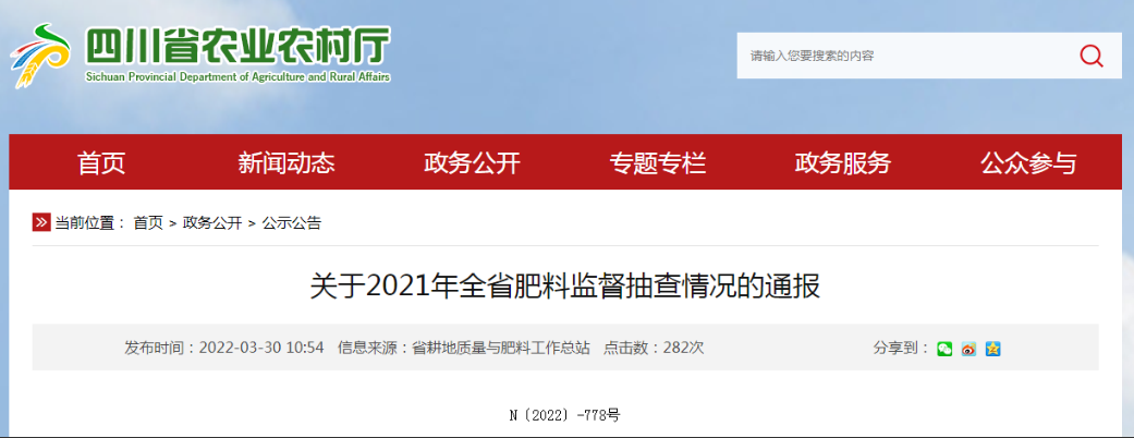 关于2021年全省肥料监督抽查情况的通报