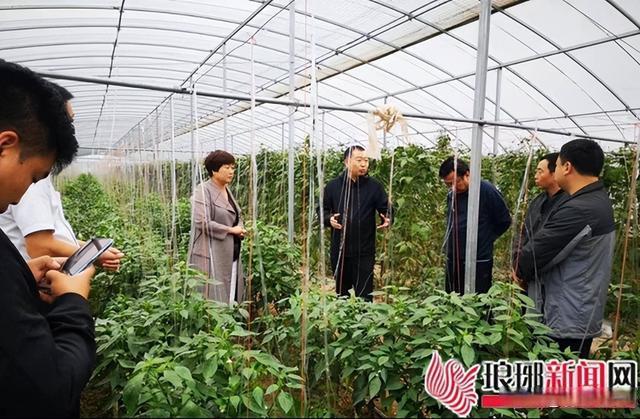 黄玉玲与延津县县委副书记、县长李中耀一起走访蔬菜种植大棚。