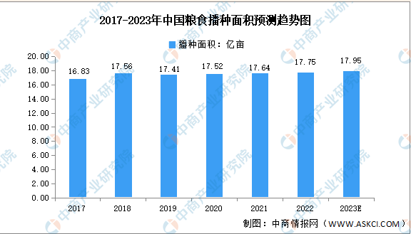 史丹利在2022年年报中表示,当农作物市场价格保持稳定或出现上涨时,农民具有稳定和积极的种植投入意愿,对于复合肥的需求也会持续增长。根据中商情报网的统计数据,预计2023年我国粮食播种面积将达到17.95亿亩,较2022年继续上升。