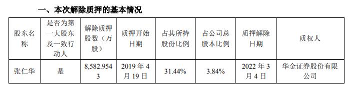 3月7日电瑞康医药公告,瑞康医药集团股份有限公司(以下简称“公司”)近日接到实际控制人张仁华女士的函告,获悉张仁华女士所持有本公司的部分股份已解除质押,具体事项如下: