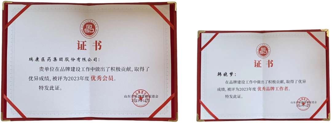 为深入贯彻省委、省政府质量强省和品牌战略,表彰广大会员在品牌建设中取得的成绩和对省品促会做出的贡献,山东省品牌建设促进会第六次会员代表大会暨理事会(扩大)会议于12月4日在济南隆重召开。会上,对2023年度经自主申报和专家评审等工作程序评选出的103家“优秀会员”、82名“优秀品牌工作者”给予表彰。瑞康医药集团荣获“2023年度优秀会员”荣誉,集团文宣部及政府事务部韩晓梦获评“2023年度优秀品牌工作者”。