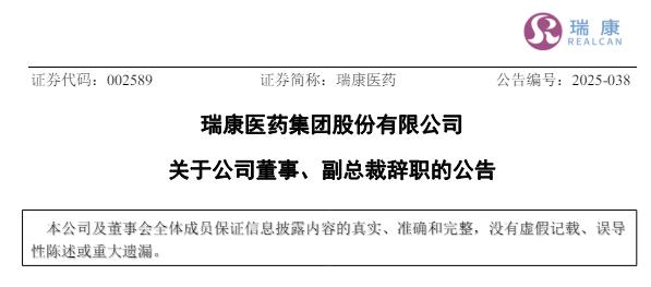 近日,瑞康医药集团股份有限公司(以下简称“瑞康医药”)发布公告称,董事、副总裁韩春林因个人原因申请辞去所有职务,辞职后不再担任该公司及控股子公司任何职务。瑞康医药称,韩春林的离职不会影响董事会运作及正常经营,将尽快启动董事补选程序。