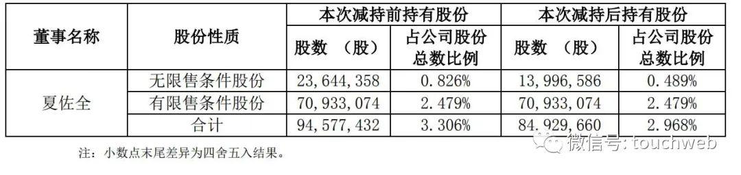 2021年5月,比亚迪称公司联合创始人、第三大自然人股东夏佐全减持不超过12,000,000股A股,占其所持本公司A股总股数的比例不超过12.69%,占公司总股本比例不超过0.42%。以当时股价计算,夏佐全套现超过20亿元。