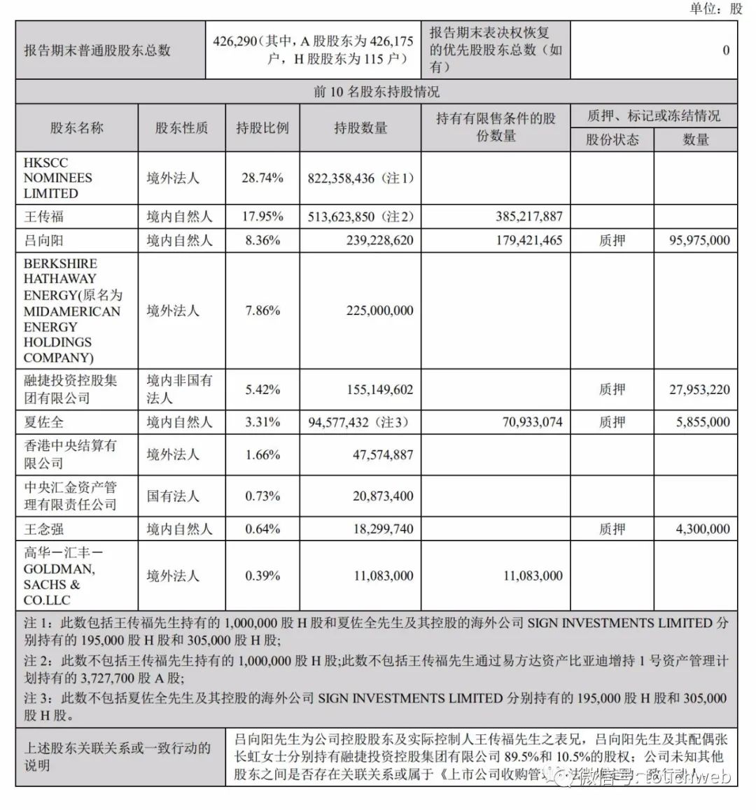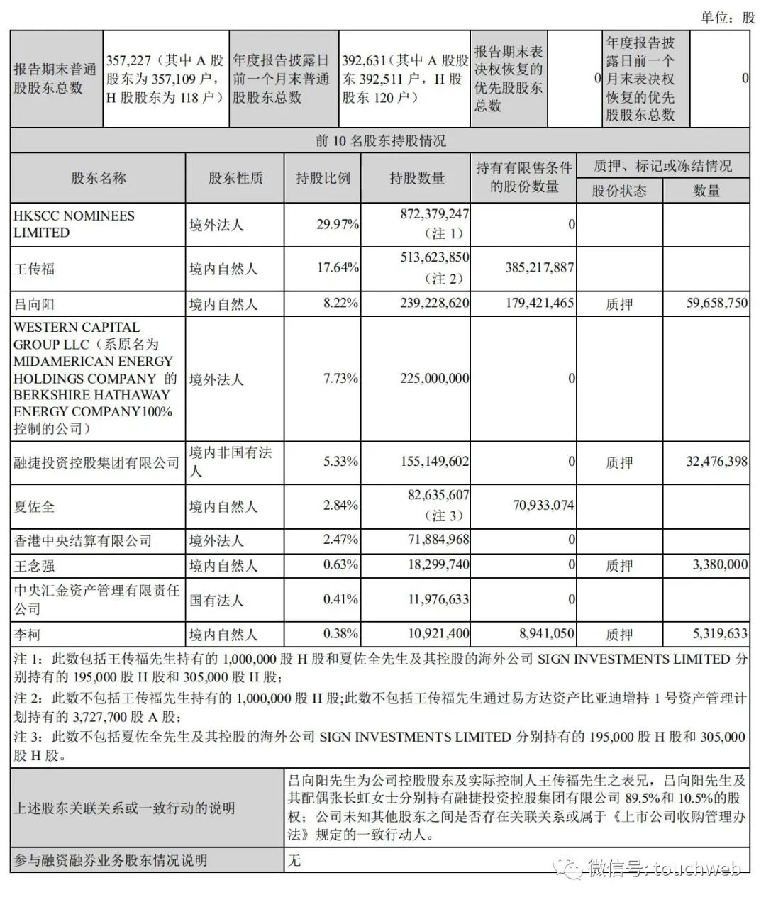 BERKSHIRE HATHAWAY ENERGY(原名MIDAMERICAN ENERGY HOLDINGS COMPANY)持股7.86%,融捷投资控股持股为5.42%;