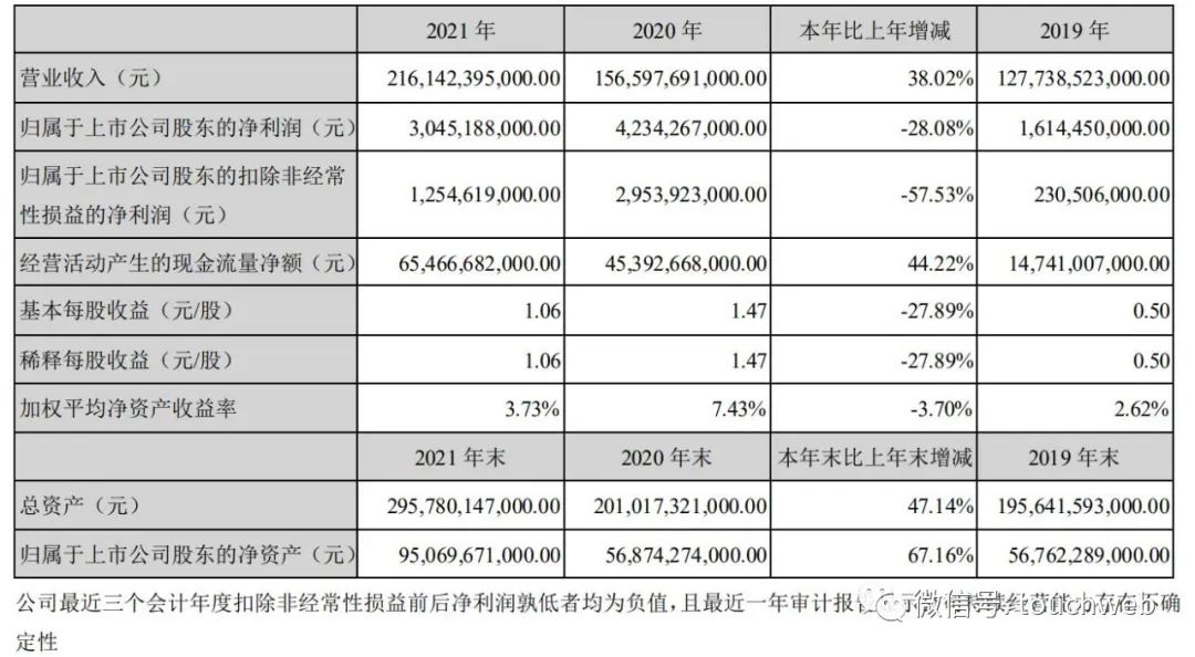比亚迪2021年净利为30.45亿元,较上年同期的42.34亿元下降28%;扣非后净利为12.55亿元,较上年同期的29.54亿元下降57.53%。