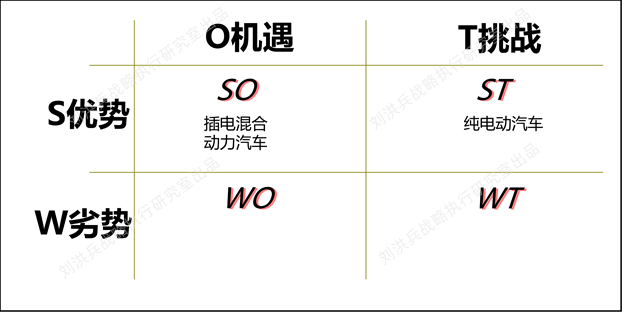 因此,我们就会发现比亚迪插电混合动力汽车和纯电动汽车在SWOT中的象限位置并不相同。