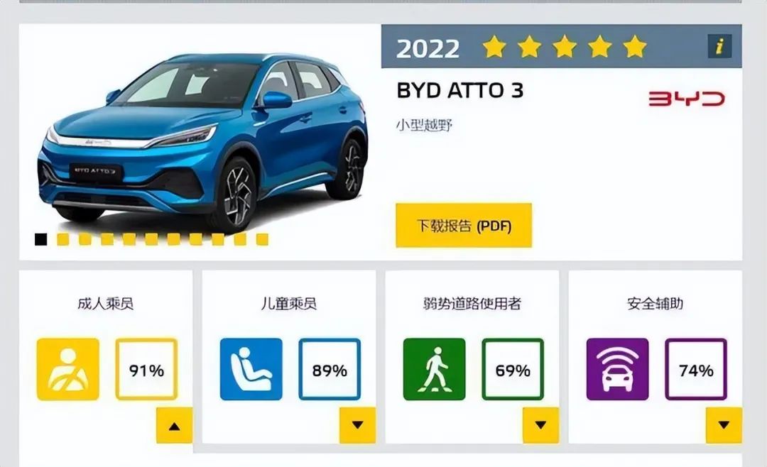 此次参与Euro NCAP安全测试的车型为比亚迪ATTO 3,其实就是元PLUS的海外版车型。ATTO 3在各个测试项目中表现出色,最终取得了五星成绩,说明比亚迪旗下产品在安全性能和产品品质方面,有着出色的表现。