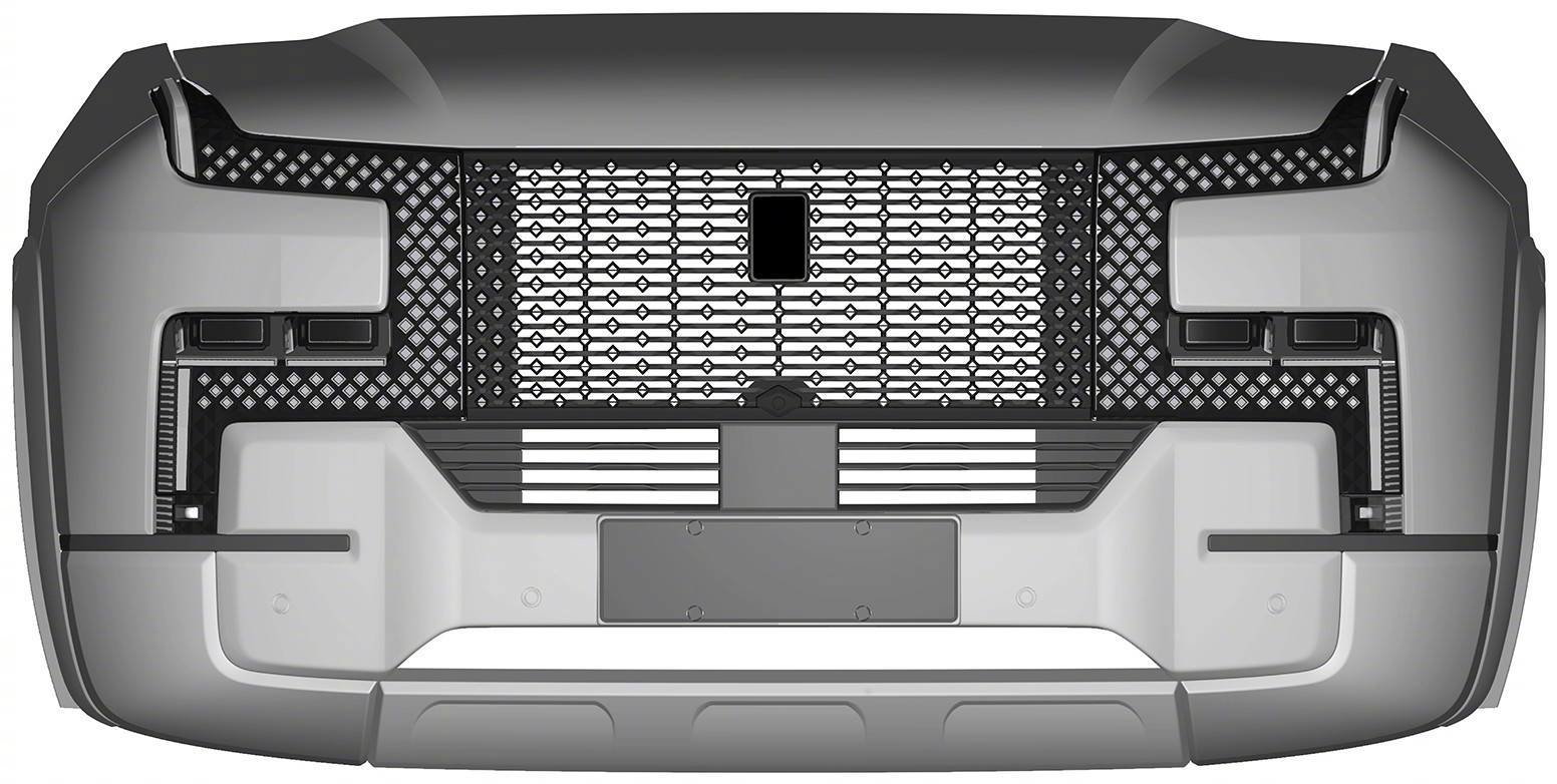 从专利图看,其前脸非常复杂,有大量的镀铬装饰和灯光