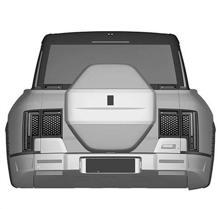备胎外挂,置于尾门正中,两侧的尾灯也跟前大灯一样复杂