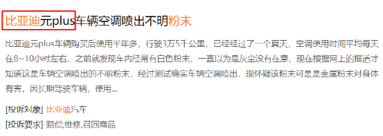 中国基金报记者注意到,数月前微博、黑猫投诉等平台上就已经出现关于比亚迪海豚空调口“喷粉”问题的投诉,进入10月份投诉量明显增多且集中出现。除了比亚迪海豚外,也有车主投诉比亚迪元plus存在同样的问题。