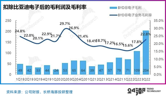 由于比亚迪业务包含汽车与电池及手机部件,在扣除比亚迪电子(00285.HK)的业绩贡献后,才能真正反映出比亚迪新能源汽车业务的含金量。