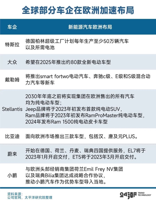 事实上,近年来以比亚迪、蔚来、极氪、哪吒、爱驰等为代表的中国新能源车企都在为出海作战做了诸多尝试及布局,战略布局由东南亚等新兴市场辐射欧洲诸国,未来中国车企有机会赢得这场“欧美战事”。