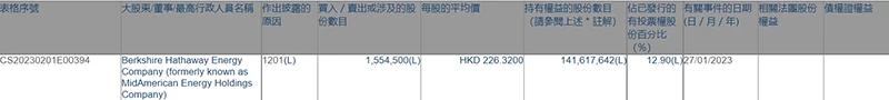 2月2日晚间,港交所文件披露,股神沃伦·巴菲特旗下的投资公司伯克希尔·哈撒韦,于2023年1月27日以3.52亿港元的价格出售了155.45万股比亚迪H股。文件显示,此次出售使伯克希尔在比亚迪港股中的持股比例从13.04%进一步降至12.9%。