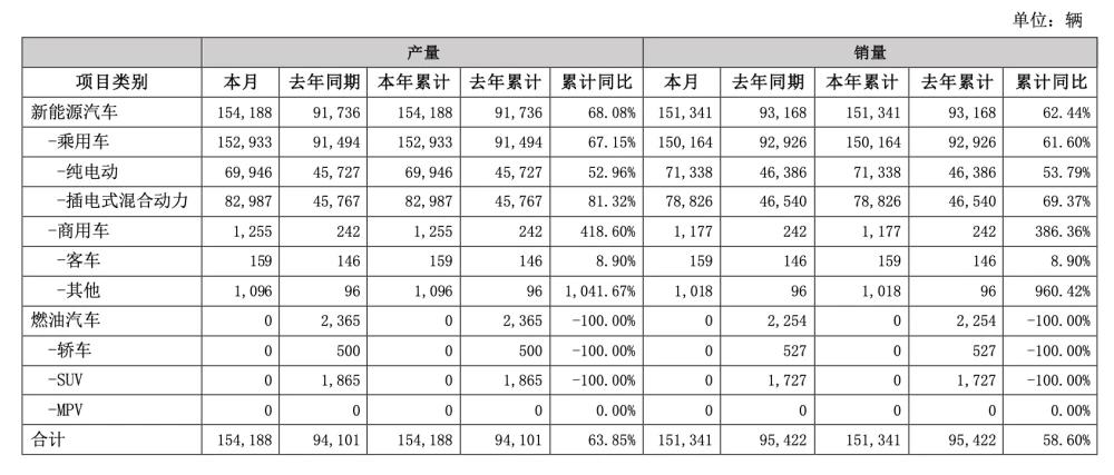 今年1月,销量增长势头依然强劲。比亚迪新能源汽车总销量15.13万辆,同比增长62%。其中,纯电动乘用车销量为7.13万辆,同比增长54%;插电式混合动力乘用车销量为7.88万辆,同比增长69%。