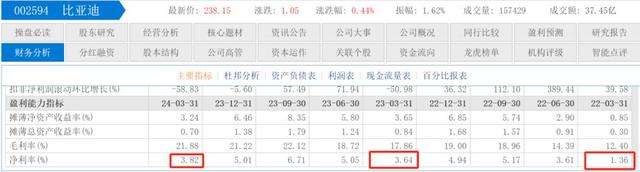 ¡¡¡¡Ò»¼¾¶È3.82%µÄÏúÊÛ¾»ÀûÂÊ¿´ËƲ»¸ß£¬ÆðÂëºÍ2023ÄêÈ«Äê5.20%µÄÏúÊÛ¾»ÀûÂÊÏà±ÈÓÐËùÏ»¬£¬µ«×ݹ۱ÈÑǵϵIJƱ¨·¢ÏÖ£¬±ÈÑǵÏÒ»¼¾¶ÈµÄÏúÊÛ¾»ÀûÂÊÏà±ÈÈ«ÄêÆ«µÍ£¬²»½öÊDZÈÑǵÏÒ»¼Ò£¬BT²Æ¾²éÔĶà¼Ò³µÆóºó·¢ÏÖ£¬¾»ÀûÂÊÆ«µÍ³ÉΪÐÐÒµÆÕ±éÏÖÏó¡£