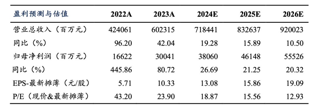 由于DM5.0订单超预期,我们上调公司24-26年归母净利润至381/461/555亿元(此前预期352/424/510亿元),同增27%/21%/20%,对应PE分别为19/16/13x,考虑到公司龙头地位,给予24年25xPE,目标价327元,维持“买入”评级。