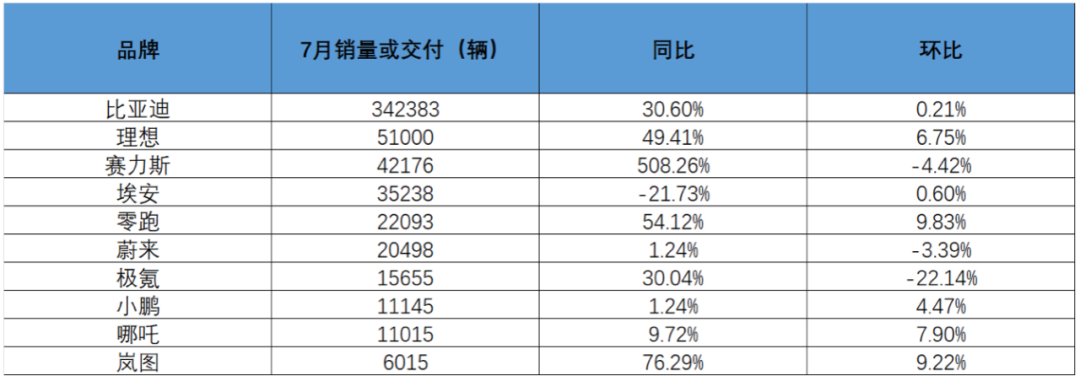 而东风旗下的岚图汽车7月交付新车6015辆,同比增长76%。