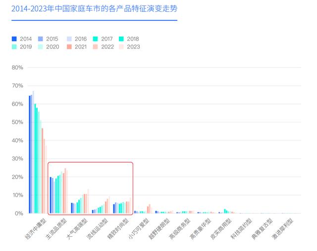 有数据统计,近十年,中国家庭车市的用户结构变化剧烈。2021-2023年,中国“新家庭车市”的用户结构快速成型,中年占比突破60%,高学历占比逼近70%,女性占比升至36.74%,中产占比升至43.54%。
