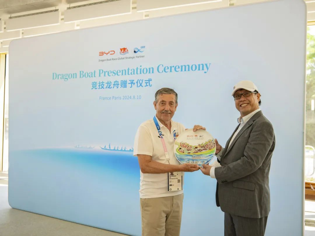 本次在巴黎,比亚迪除了参与到龙舟表演赛之外,更将3艘符合国际标准的竞技龙舟分别赠送给了国际皮划艇联合会、欧洲皮划艇协会、法国皮划艇协会。这3艘龙舟承载着比亚迪对龙舟运动的热爱与支持,以及对体育文化交流的友好态度,远渡重洋,落户巴黎,并将用于三家组织的日常训练及国际文化交流体验。比亚迪希望通过赠送竞技龙舟这一实际行动,激发更多人对龙舟运动的兴趣与热爱,为推动龙舟运动的全球化发展贡献一份力量,更为国际文化交流添砖加瓦。