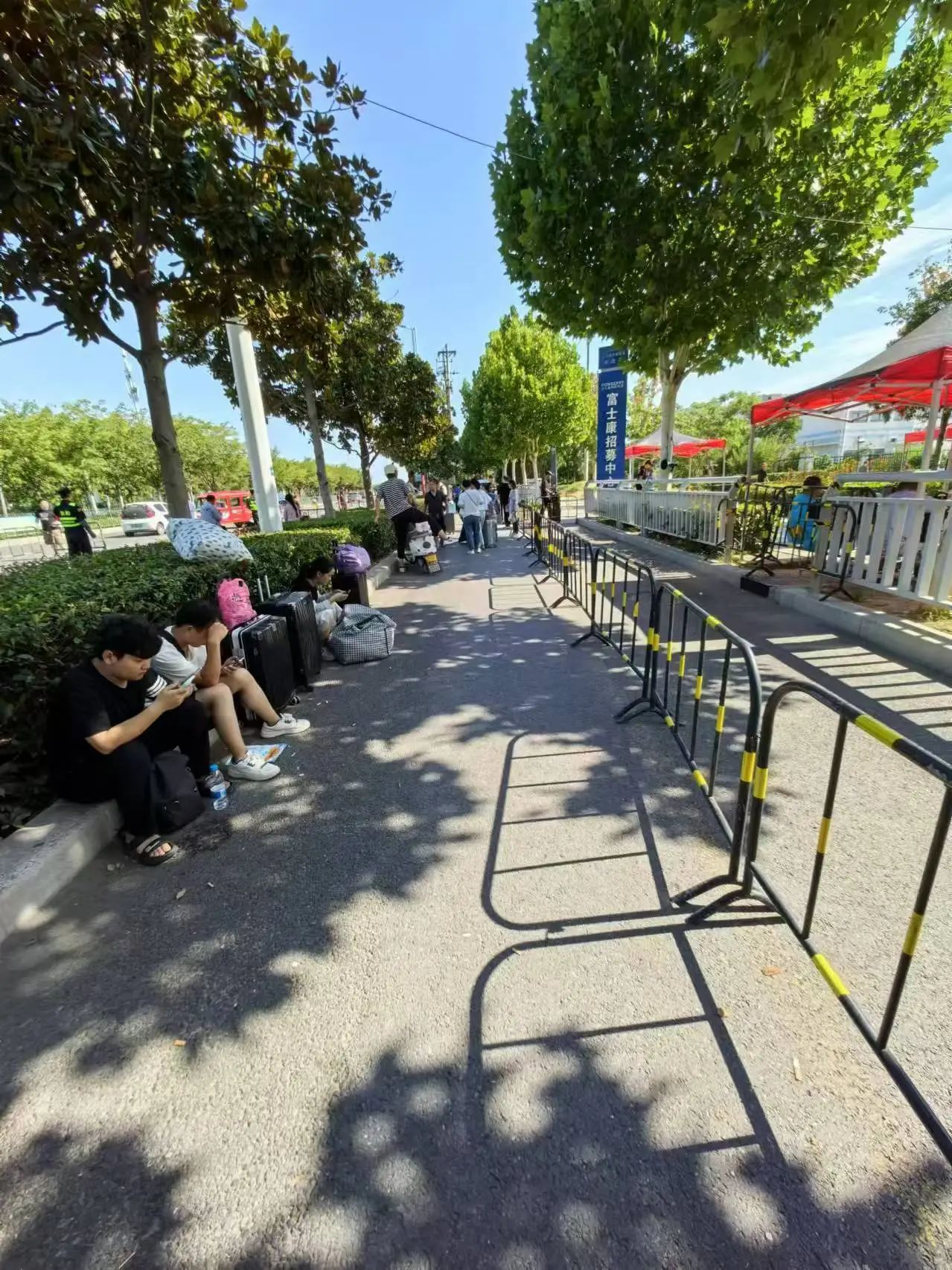 一位拖着行李箱前来的求职者也表示,按照报名后收到的通知,他需要上午到厂,经过面试和体检后,当日就会入职并分配宿舍。