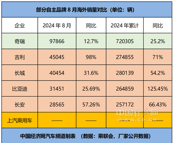 同为“出海”领头羊的上汽集团,却出现罕见的销量下跌。数据显示,上汽8月在海外的销量为79911辆,同比下滑22.15%;1-8月累计销量649545辆,同比下滑11.40%。