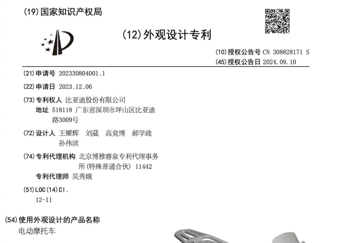 今日,于网络上我们看到了一张关于比亚迪摩托车的相关专利图。在这张专利图中,除了能看到这辆摩托车的一些外观设计信息以外,还有很重要的一点便是:这是辆电动摩托车。至于是网友们推断的纯电动还是油电混动目前还不得而知。