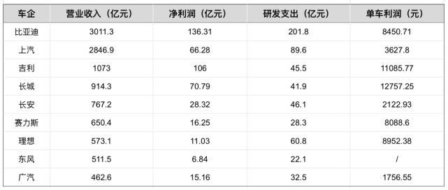 在单车利润方面,长城汽车、吉利汽车、理想汽车、比亚迪、赛力斯依次位列前五位。值得注意的是,尽管比亚迪在销量、营收及净利润上均稳居领先地位,但在单车利润上却仅排第四,约为8500元。更让人震惊的是,今年上半年,比亚迪研发投入居然高达202亿元,大幅超过净利润。花的比赚的多,比亚迪为什么要干这“傻事”呢?