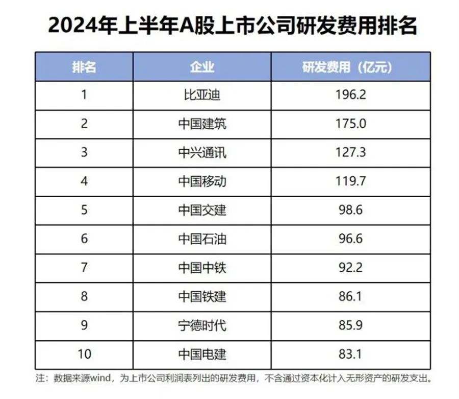 从Wind提供的数据中不难看出,比亚迪以196.2亿元的研发费用位列今年上半年A股上市公司“研发之王”,且超过国内主流车企第二(上汽集团)、第三(吉利汽车)、第四名(长城汽车)的研发投入之和。事实上,在过去14年里,比亚迪有13年研发投入高于净利润,有时候甚至是同期净利润的几倍。截至目前,比亚迪累计研发投入已接近1500亿元。