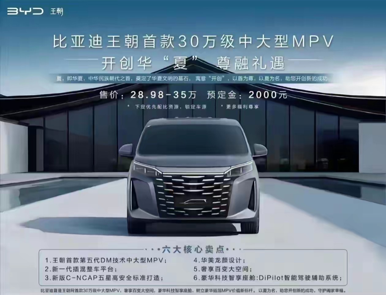 据车媒“汽车之家”今日援引经销商消息称,比亚迪夏 MPV 的预定参考价格为 28.98 万-35 万元,预定金为 2000 元。报道称,夏的最终上市价格很可能比经销商曝光的价格更低一些,与腾势 D9 形成“错位定价”。