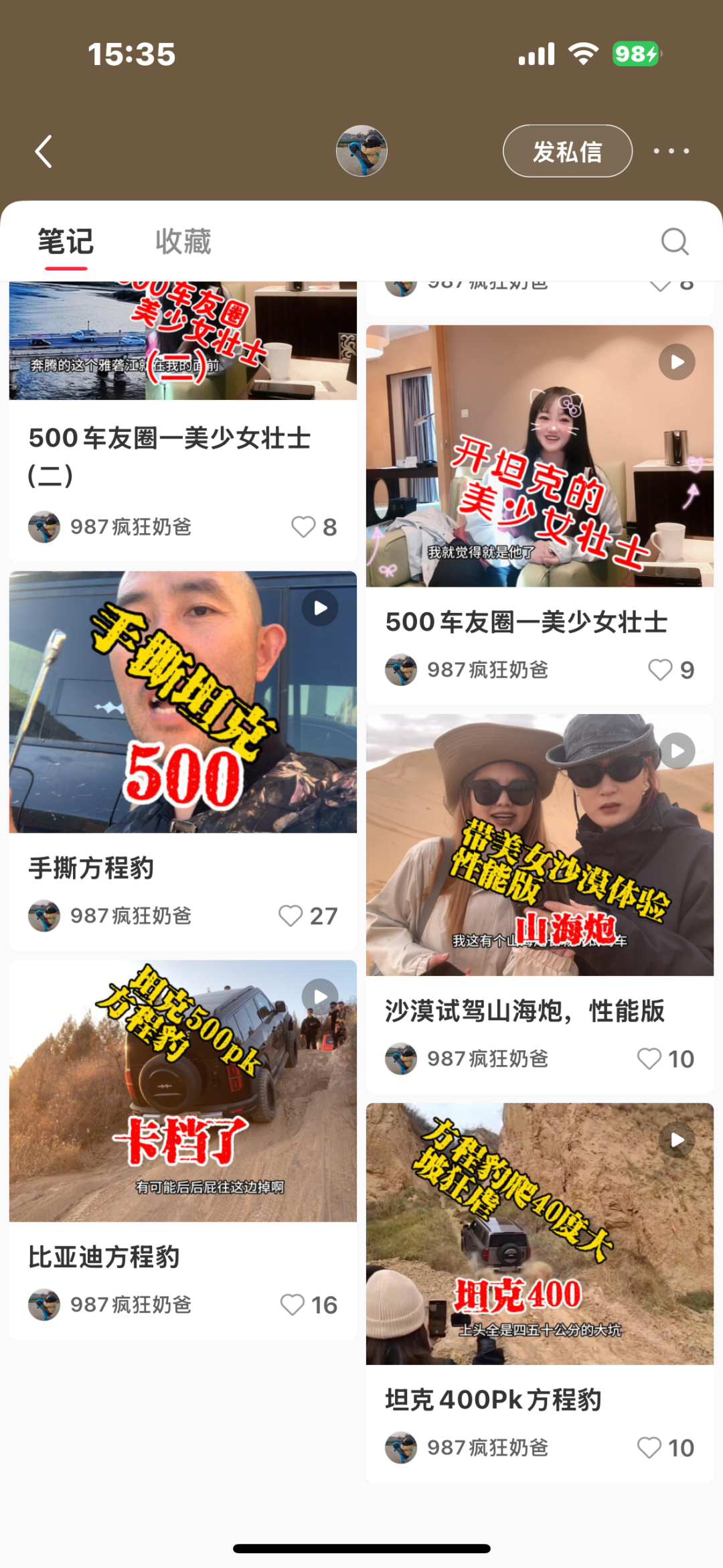 据了解,自媒体“987疯狂奶爸”主要的视频发布平台是抖音,其首条视频发布于2022年11月3日,截至被封禁前累计发布超540个作品,累计粉丝约2.9万。从其发布的视频作品来看,其最喜欢的汽车品牌是长城汽车旗下坦克,几乎发布与坦克品牌相关的视频都是以夸赞为主。当然,喜欢某一个品牌也是无可厚非的,但该博主发布的其它品牌视频,特别是对比亚迪品牌及其产品进行多次恶意贬低,拉踩。