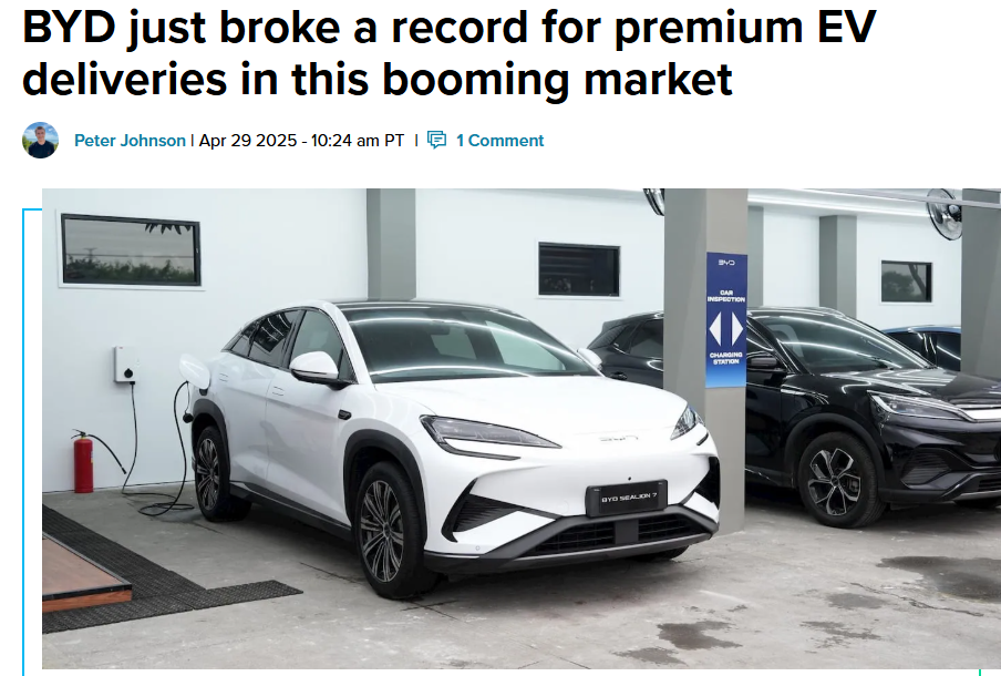 电动知家消息,4月29日,据外媒报道,比亚迪创下印度高端电动汽车单日交付量新纪录。随着全新中型电动SUV海狮7的上市,比亚迪正式载入《印度纪录大全》。比亚迪表示,这一成就“不仅仅是一个交付里程碑”,也是“迈向更清洁、更绿色、更可持续的印度的一大步”。