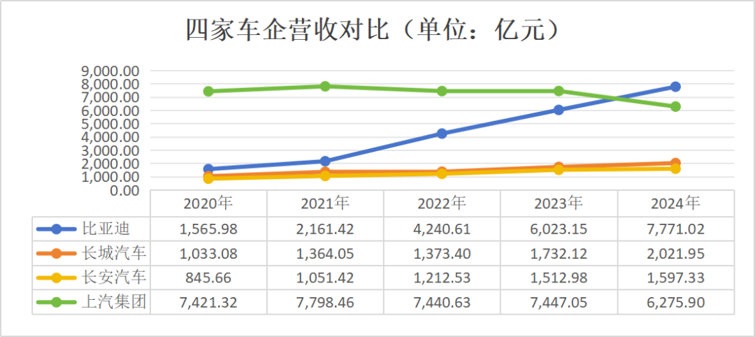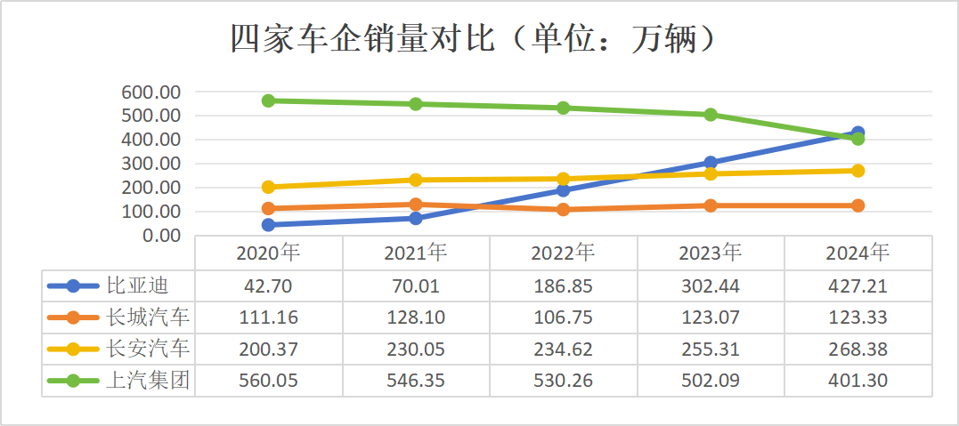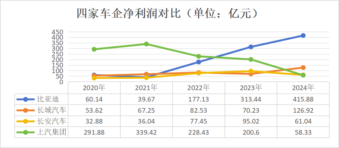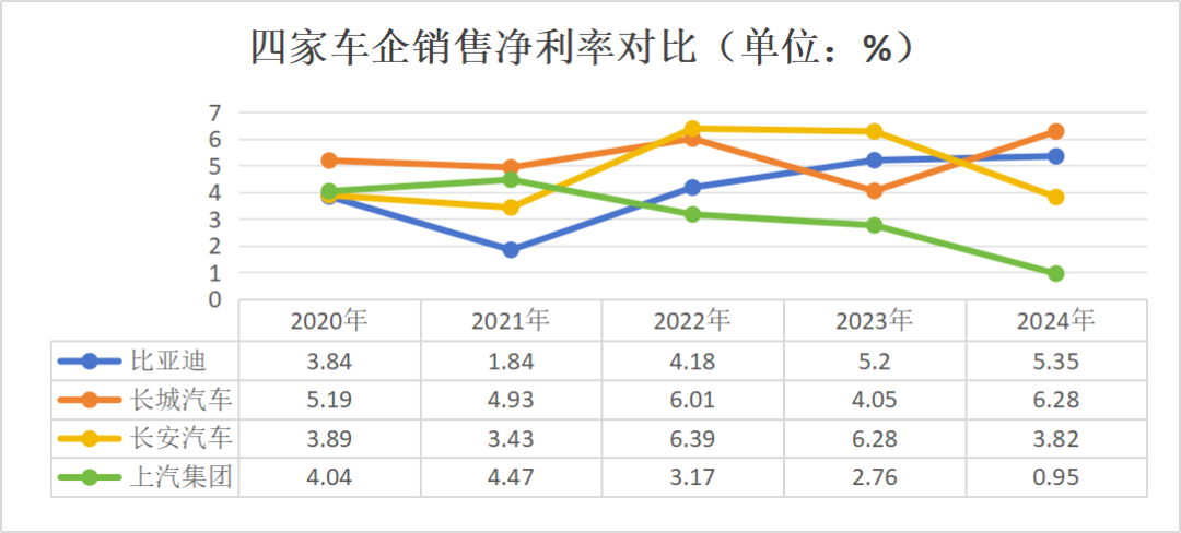 截至2024年年末,比亚迪的销量、营收和净利润已超过上汽集团、长安汽车、长城汽车,销售净利率虽不敌长城汽车,但2024年仍同比上升0.15%。