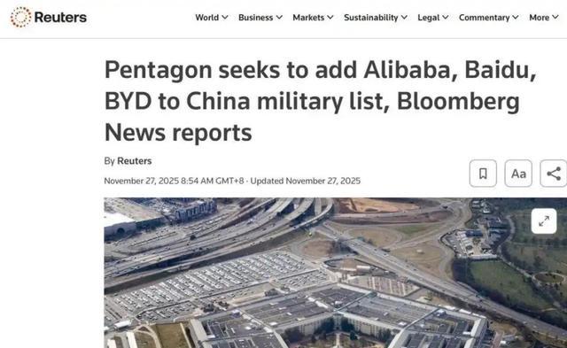 11月下旬,媒体曝料称,美国国防部早在2025年10月7日,就建议将 比亚迪 纳入“1260H名单”,也就是中国军事企业名单,除了 比亚迪 之外,阿里、 百度 等高新技术企业也被纳入该名单,老美方面将国内科技、互联网的头部企业,纷纷纳入了所谓的“军事企业名单”,这意味着这些企业的产品想要进入美国市场,短时间内都是不可能了,如果老美未来还继续“作妖”,那么那些影从老美的国家和地区,很可能也加入其中。