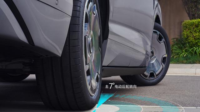 底盘悬挂方面,大唐搭载了云辇A双腔空气悬挂,支持上下100mm的高度调节,同时还搭载了左右各7度的电动后轮转向功能,让这辆大车的转弯半径仅有5.2米。所以这款车上路行驶不仅拥有非常强势的舒适性体验和路况适应能力,而且让大车没有了笨重感,不管是高速并线还是狭小路况的转弯、掉头,都是比较利于操控驾驶的,这一点非常重要。
