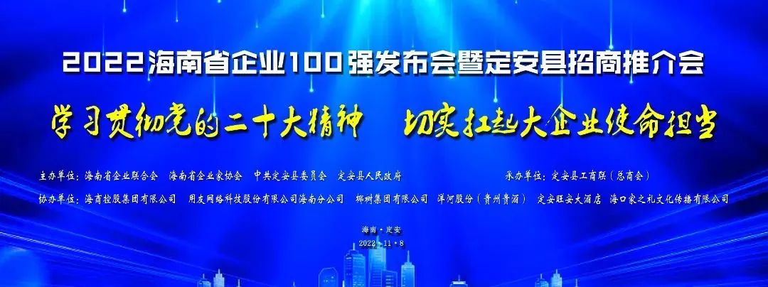 11月8日,海南省企业联合会、海南省企业家协会举行发布会,发布2022海南省企业100强名单,并同步推出2022海南省企业100强(含制造业企业40强、服务业企业50强)年度分析报告。入选百强企业负责人,专家学者、主流媒体代表等200余人参加会议。